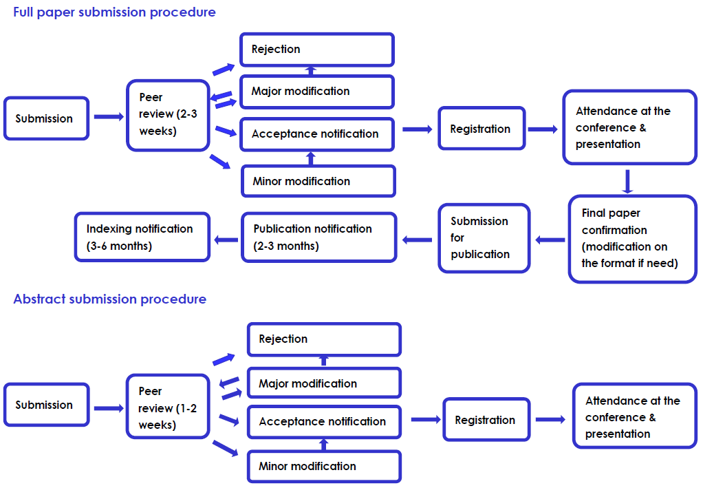 - Note:a. Your submission will be reviewed by the conference scientific committee and reviewer team.b. Only Full paper submission will be published in conference proceedings if accepted.c. Abstract submission will only be considered for an oral/poster presentation and included only in abstract book if accepted.